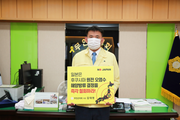 무안군의회 김대현 의장은 지난 17일 ‘일본 원전 오염수 해양방류 결정 규탄 및 철회 촉구 릴레이 챌린지’에 동참했다.