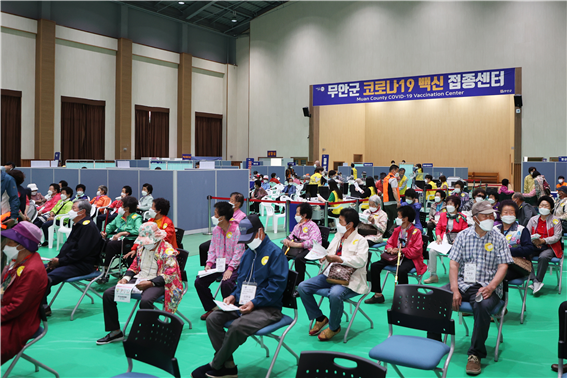 무안군(군수 김산) 남악 코로나19 예방접종센터가 지난 5월 6일 질병관리청으로부터 개소 승인을 받아 5월 12일부터 75세 이상 어르신들을 대상으로 화이자 백신접종을 시작했다.
