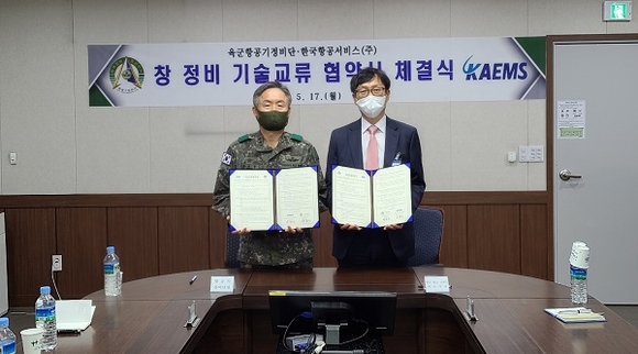 한국항공우주산업(KAI)의 자회사인 한국항공서비스(KAEMS)는 육군 항공기 정비단(항정단)과 17일 '항공기 창정비 기술교류 및 정보공유를 위한 기술교류 협약서'를 체결했다.