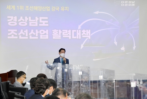 김경수 도지사는 이날 오전 거제시청에서 진행된 '경상남도 조선산업 활력대책 발표 및 조선업종 상생협력 특례자금 지원 협약식'에서 “조선산업과 경남은 운명공동체”라며 “단지 어려움을 극복하는 수준을 넘어 경남의 미래성장동력, 미래먹거리로써 잘 준비해나가야 한다”고 말했다.
