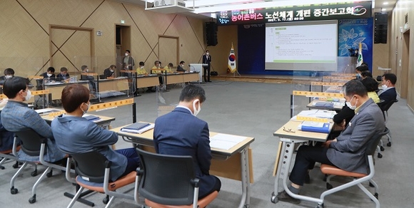 이날 보고회는 그간 농어촌버스 노선체계 개편을 위한 연구용역의 진행상황 및 중간 개편(안)을 제시하고 의견을 수렴하기 위해 마련됐다.