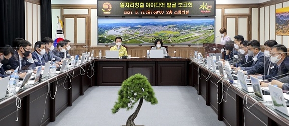 지난 3월 22일부터 4월 16일까지 '양질의 일자리 발굴 아이디어 공모'를 진행한 결과 군민 제안 4건, 공무원 제안 75건 총 79건의 아이디어가 접수됐으며, 해당 아이디어를 검토해 시행 가능한 제안서를 중심으로 보고회가 진행됐다.