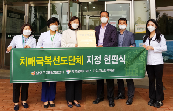 담양군(군수 최형식)은 20일 치매 대상자 및 가족이 안심하고 생활할 수 있는 치매 친화적인 사회문화를 조성하기 위해 담양군 노인복지관(관장 이동오)을 치매극복 선도단체로 지정하고 현판식을 가졌다.