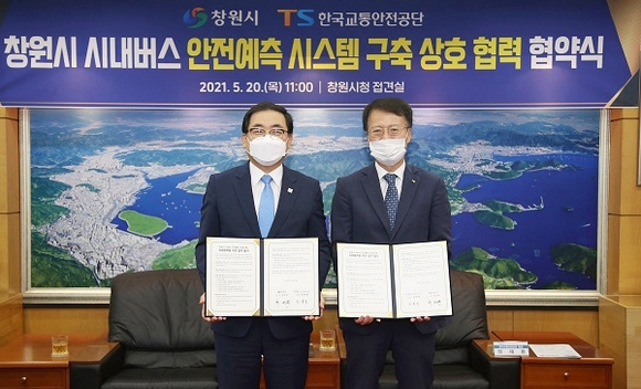 경남 창원시는 20일 오전 시청 접견실에서 관내 시내버스 안전사고 제로화 구현을 위해 한국교통안전공단과 함께 시내버스 안전 모니터링 플랫폼 구축을 위한 실증사업 참여 협약식을 가졌다.