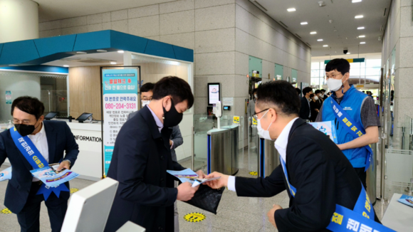 전라남도와 전남도청공무원노동조합은 21일 청렴문화 확산과 갑질 없는 공직사회 조성을 위해 도청 공직자들을 대상으로 갑질 근절 등 조직문화 개선 캠페인 활동을 펼쳤다.