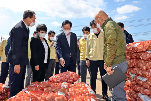 고흥군(군수 송귀근)은 21일 풍양면 한동공판장에서 송귀근 군수를 비롯한 박미화 풍양농협장 등이 참석한 가운데 고흥 햇마늘 대형마트 출하식을 갖고, 코로나19로 어려움을 겪고 있는 마늘 재배농가들의 판로확장에 안간힘을 쏟고 있다고 밝혔다.
