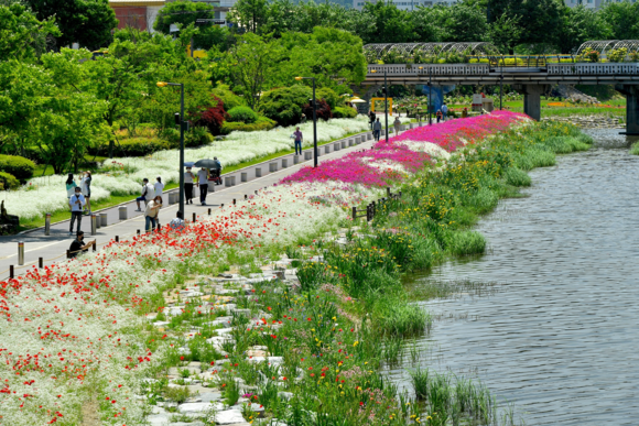 가장 인기 있는 꽃은 금영화다. 제2황룡교 아래와 서삼교, 개천인도교 등지에서 볼 수 있다. 주로 황금색과 주황색 꽃이 식재되어 있으며, 빨간색 꽃도 드문드문 섞여 있다. 동그란 모양의 꽃잎을 활짝 피운 모습이 앙증맞다. 해가 서쪽으로 뉘엿뉘엿 기울면 꽃봉오리가 길쭉해지도록 잎을 오므린다. 꽃말은 ‘희망’이다.