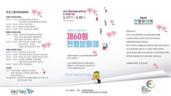 특히 올해 천령문화제는 2021 함양산삼항노화엑스포 개최 'D-100'을 앞두고 엑스포 추진사항보고회를 비롯하여 모터사이클 퍼레이드, 자전거 국토종주 기념행사 등 엑스포 붐 조성을 위한 다양한 이벤트 행사도 병행하여 개최된다.