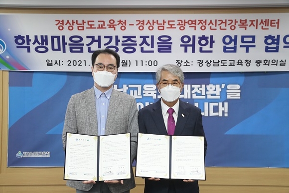 경남도교육청은 24일 본청 2층 중회의실에서 경남도광역정신건강복지센터와 '학생 마음건강 증진'을 위한 업무협약을 체결했다.