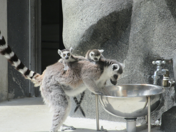 알락꼬리여우원숭이 한쌍의 탄생은 우치동물원에서는 처음 맞는 일이다. 우치동물원은 이들의 안정적인 양육을 위해 태어난지 2달이 지나 일반에 공개했다.