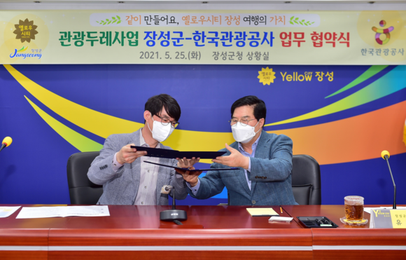 장성군과 한국관광공사가 25일 군청 2층 상황실에서 ‘관광두레사업 협력 업무협약’을 체결했다.