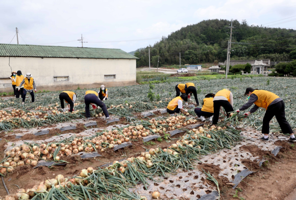 대학, 유관기관 등 참여...소규모 영세농가 양파 수확 도와