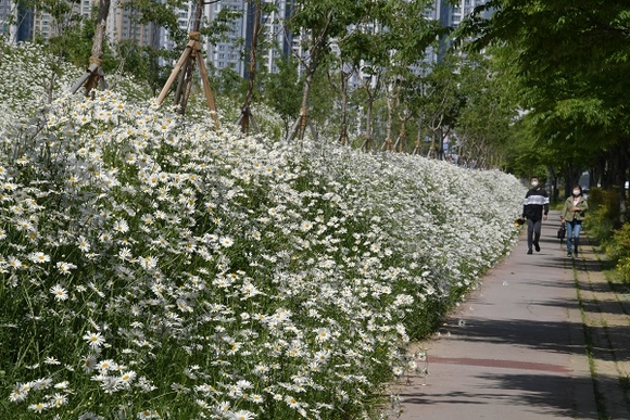 아울러 시는 초화류육묘장에서 직접 생산한 야생화 모종 샤스타데이지, 금계국 등 20만본을 부산대 유휴부지 경사면에 7천㎡ 규모로 식재해 지난해에 이어 올해 봄에도 만개했다.