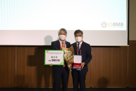26일 부산 벡스코 컨벤션홀에서 열린 이번 생화학분자생물학회 국제학술대회에서 안영근 병원장은 활발한 학술 및 연구 활동과 생화학분자생물학회지인 ‘EMM’의 인지도 제고 등의 공로를 인정받아 2021청산상 수상의 기쁨을 안았다.