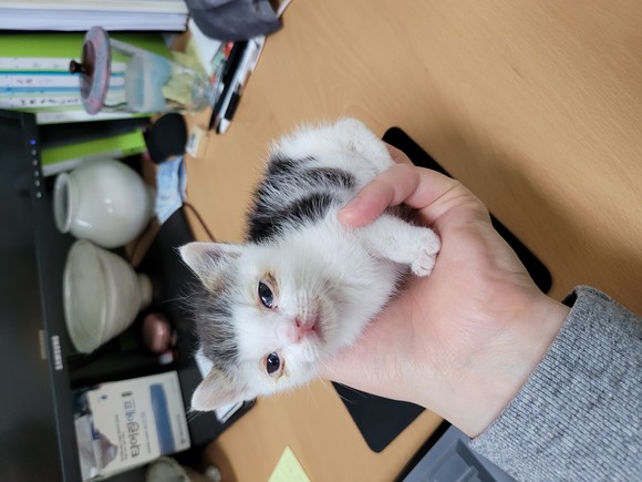 이후 보듬이는 낮에는 센터에서 근무(?)하고 밤에는 직원들이 번갈아가며 집으로 데려가 돌봤다. 밤에도 최소 4시간에 한 번씩은 젖을 먹이고 투약도 해야 했다. 직원들은 보듬이를 동물보호소에 맡기는 방향도 고려했으나 분양이 되지 않을 경우 안락사될 수도 있다는 부분을 확인한 후 “생명을 살리는 일을 하는 곳에서 생명을 버릴 수는 없다”며 계속 함께하기로 의기투합했다. 이후 보듬이는 건강한 어린이 고양이가 됐고 학생들과 놀아주며 건물 순찰도 돌며 성실하게 생활하고 있다.