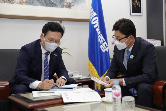 김 군수는 1조원 규모의 3대 SOC프로젝트와 5대 뉴딜 추진을 위해 현안사업, 공모사업, 신규사업 유치에 직접 뛰며 청와대, 국회, 기획재정부 등을 지속적으로 방문하고, 국비 지원을 요청해 역대 최대 공모사업비, 국비, 지방교부세 등을 확보해 왔다.