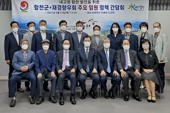지난 27일 경남도 남명학사 서울관에서 합천 청정에너지 융복합발전단지 조성사업의 원활한 추진을 위해 최효석 재경 도민회장과 문희주 재경 합천군향우회장 등 주요 임원 12명과 합천군, 남부발전 관계자가 모여 고향발전을 위한 정책 간담회를 가졌다.