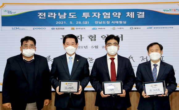 협약식에는 김영록 지사와 이병흥 ㈜엘씨엠에너지솔루션 회장, 이슬찬 대표이사, 정찬균 나주시 부시장이 참석했다.