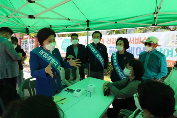 먼저, 양 의원과 주요 당직자들은 시민과 당원을 대상으로 더불어민주당에 대한 평가와 지난 4월 보궐선거에서 패한 이유, 당의 중점 과제, 대선 승리를 위한 방안, 지역현안 등 각종 이슈에 대한 반응을 설문지로 물어 민심을 확인했다.