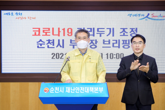 한편, 순천시는 코로나19 예방접종에서 전 시민의 11.7%가 1차 접종을 실시했으며, 4.6%가 2차 접종까지 완료했다. 연령별 사전예약률은 70세~74세 82.6%, 65세~69세 78.9%, 60세~64세 70.1%로 36,469명이 사전 예약하여 대상자의 75.9%가 사전예약을 마쳤다.