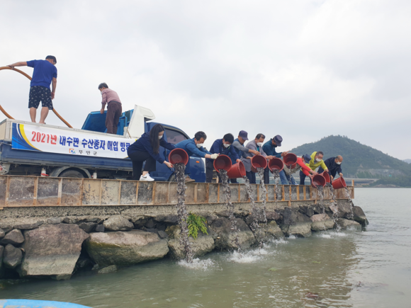 무안군(군수 김산)은 지난 27일 일로읍 우비선착장에서 어업인과 유관기관, 단체 등이 참여한 가운데 내수면 수산종자 방류 행사를 가졌다고 밝혔다.