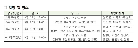 한편 주민설명회와 관련된 자세한 사항은 군 홈페이지 공지사항을 참고하거나 무안군청 미래전략과로 문의하면 된다.