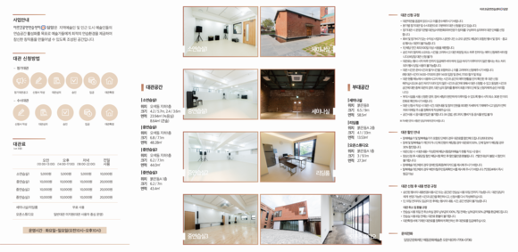 대관신청은 한국문화예술위원회 홈페이지 회원가입 후 가능하다. 자세한 사항은 해동문화예술촌으로 문의하면 된다.