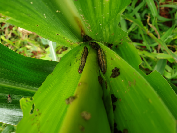 유충의 머리에는 ‘Y자 무늬가 새겨져있고, 옥수수 줄기와 새로 나오는 잎 사이에 숨어 엽육과 줄기 심부를 가해하여 큰 피해를 주기 때문에 발견 즉시 적용약제로 방제해야 한다.