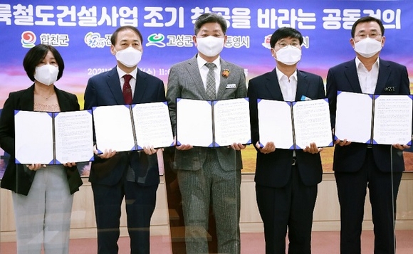 한편 경남 5개 시·군은 지난달 17일 남부내륙철도 건설사업 타당성 조사 및 기본계획 수립 용역이 올해 10월로 한 차례 더 연기됐다는 언론 보도를 접하고, 시·군 간 소통을 통해 이날 공동 건의문을 마련했다.