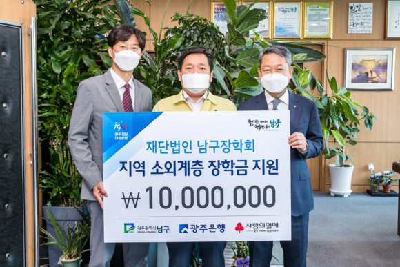 이번 전달식을 통해 광주은행은 (재)남구장학회에 1천만원의 장학금을 전달했으며, 이는 지역의 어려운 소외계층 학생들을 위한 장학금 재원으로 쓰여질 예정이다.