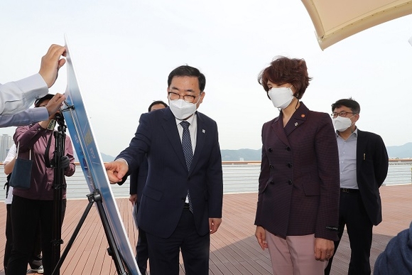 경남 창원시는 2일 한정애 환경부 장관을 만나 마산만 수질개선 등 지역 현안문제 해결을 위해 간담회를 갖고 마산항을 직접 찾아 현장답사를 했다고 밝혔다.