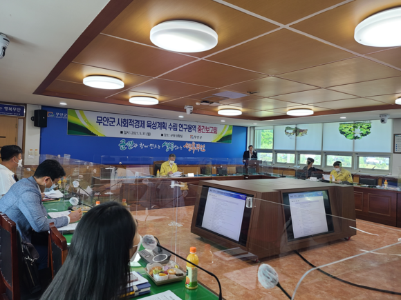 무안군(군수 김산)은 지난 31일 군청 상황실에서 사회적경제 육성 위원회 위원 10여명이 참석한 가운데 사회적경제 육성계획 수립 연구용역 중간보고회를 개최했다고 밝혔다.