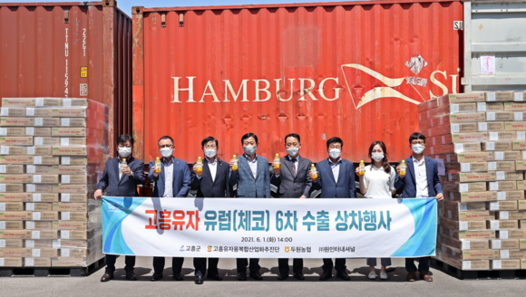 이번 수출은 기존에 수출하던 유자차를 비롯해 고흥생강차와 체코 글로벌 맥주회사 필스너의 신규제품인 유자맥주의 원료로 유자청 1톤이 첫 수출됐다.