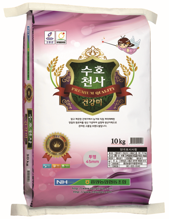 흥양농협 미곡종합처리장(RPC)에서 가공생산한 수호천사 건강미는 각종 미네랄이 풍부한 해창만 간척지에서 청정해역의 해풍을 받고 자란데다 농약을 전혀 사용하지 않고 EM, 당밀농법으로 전량 계약재배하여 가공, 유통에 이르기까지 흥양농협 전문팀에서 관리하여 밥맛이 우수한 고품질 완전미로 소비자로부터 호평을 받고 있다.