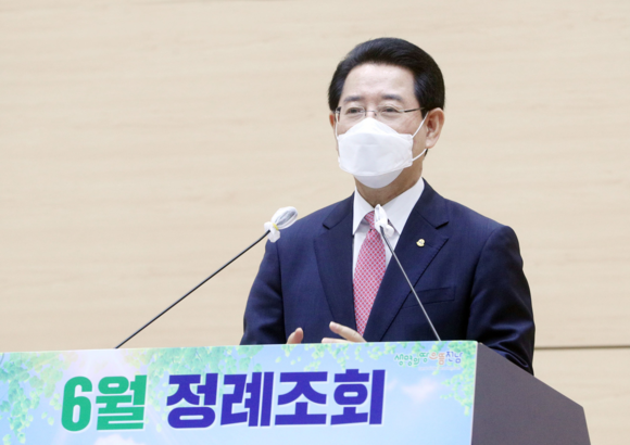 김 지사는 이날 오전 도청 왕인실에서 열린 6월 정례조회에서 코로나19 장기화로 어려운 가운데서도 일궈낸 도정 성과에 대해 격려하며, “미래 지역 발전을 담보할 정책을 발굴해 대통령 공약으로 확정되도록 더욱 노력해줄 것”을 당부했다.