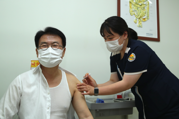 56년생인 이승옥 군수는 이날 강진의료원을 방문해 만 60세 이상 74세 미만 대상 백신인 아스트라제네카(AZ)을 접종하고, 군민들의 적극적인 백신 접종 참여를 당부했다.