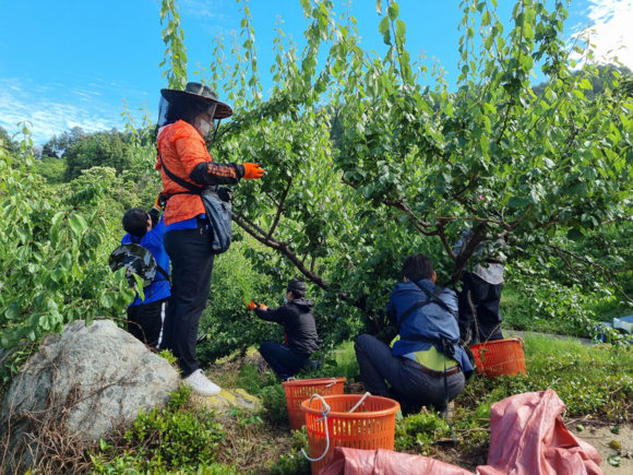 매실 수확철을 맞아 일손 부족으로 어려움을 겪는 취약농가 지원