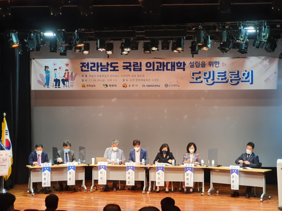 전라남도는 4일 목포시, 순천시, 목포대, 순천대와 함께 전남 국립 의과대학 설립을 위한 제2차 도민토론회를 열어 지역 의료현실과 의과대학 설립 필요성을 논의했다.