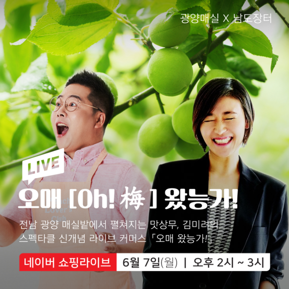광양시가 라이브커머스 플랫폼 ‘네이버쇼핑 라이브’를 통한 ‘오매 왔능가’를 운영하며 매실 판매에 나선다.