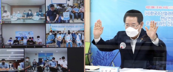 전남도에 따르면 이날 간담회는 최동익 전남수산업경영인연합회장을 비롯해 목포시 등 15개 시군연합회장 등 20명이 도청 서재필실에서 참석하고, 각 읍면동회장, 총무 등 80명이 해양수산과학원 9개 지원에서 영상으로 참여했다. 어업・어촌 현장에서도 시청하도록 전남도 공식 유튜브 채널 ‘으뜸전남튜브’로 생중계했다.