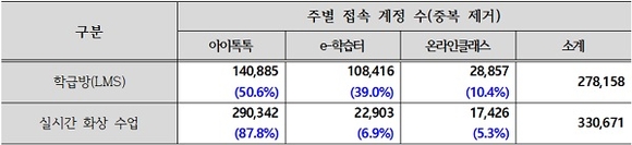 도교육청의 사용현황 분석 자료에 따르면 아이톡톡, e학습터, 온라인클래스 원격 수업활용 도구 중 아이톡톡(학급방 50.6%, 실시간 화상수업 87.8%)을 가장 많이 사용하는 것으로 파악됐다.
