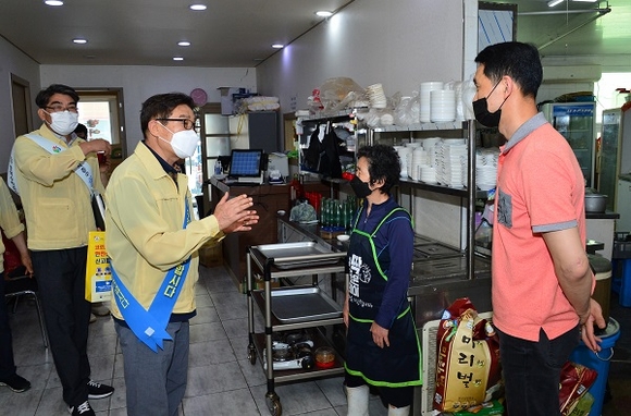 김일권 양산시장은 지난 5일 '코로나19 방역수칙 현장점검의 날'을 맞아 물금읍 일원의 식당 등을 방문해 코로나19 감염 예방을 위한 방역수칙 준수 여부를 직접 점검했다.