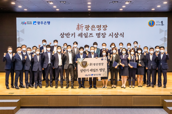 광주은행(은행장 송종욱)은 ‘新광은명장제도’를 통해 선정된 22명의 2021년 상반기 세일즈명장 직원들의 시상을 진행하며 영업력 강화에 대한 각오를 다졌다.