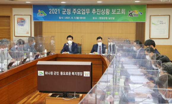 영암군(군수 전동평)은 지난 7일 군청 낭산실에서 전체 부서장이 참석한 가운데‘2021년 군정 주요업무 추진상황 보고회’를 개최했다.