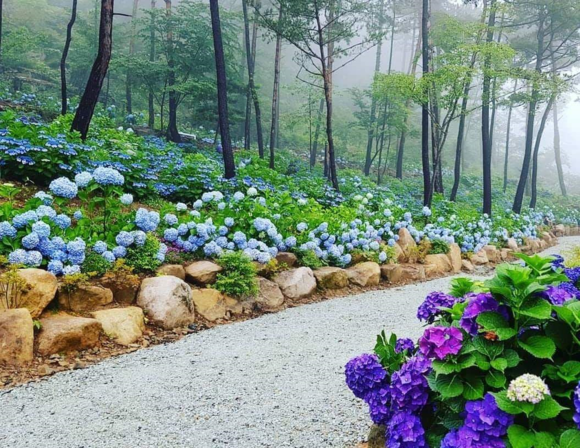 해남 4est수목원은 형형색색의 수국이 만개한 숲속을 걸으며 휴식을 취할 수 있는 곳이다. ‘This is yours’라고 크게 적힌 비석을 보면서 수목원의 아름다움이 모두 내 것인 것처럼 설레는 마음으로 숲길을 걸을 수 있다.