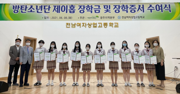 전남여상이 8일 교내 우주동인관에서 ‘방탄소년단(BTS) 제이홉 장학금’ 수여식을 개최했다.