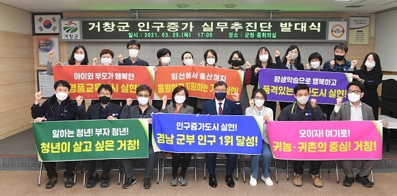 거창군은 작년 경남 군부 인구수 2위라는 성과에 안주하지 않고 더 나은 시책 추진을 위해 지난 3월 인구증가 실무추진단 발대식을 개최하고 성공적인 출발을 다짐했다.