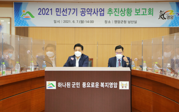 영암군은 민선7기 출범과 함께‘군민이 희망이다’라는 슬로건 아래, 군민이 진정으로 원하는 공약사업을 만들기 위해 수차례의 토론을 거쳐 군민과 전문가 등 각계각층의 다양한 의견을 반영하여 민선7기 공약사업 7개분야 58개의 세부사업을 확정하고『하나된 군민 풍요로운 복지영암』건설을 위한 6만 군민과의 약속을 성실히 수행해 왔다.