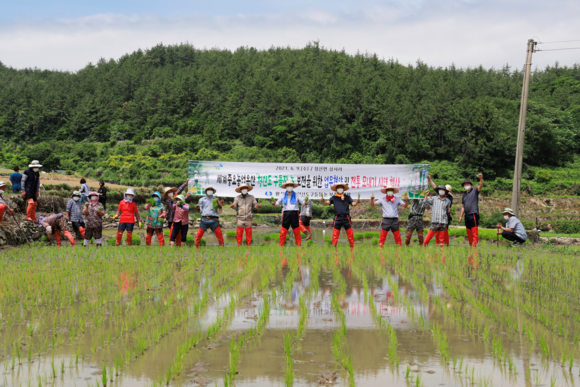 아울러 업무 협약이 끝난 후 구들장논 보존협의회 회원들의 지속적인 보전 활동을 응원하고, 구들장 논의 전통성과 우수성을 알리기 위해 신우철 군수를 비롯한 완도군의회 허궁희 의장, 김재홍 의원 및 관계 공무원 등이 주민 협의체 회원들과 함께 전통 모내기 행사를 시연했다.