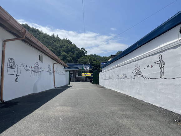 ‘하멜 일행의 병영생활’이라는 주제로 그린 벽화는 콘크리트 담장에 하멜표류기의 주인공인 헨드릭 하멜이 병영에서 7년 동안 생활했던 당시의 생활상을 담아 지나가는 이들의 이목을 끌고 있다.